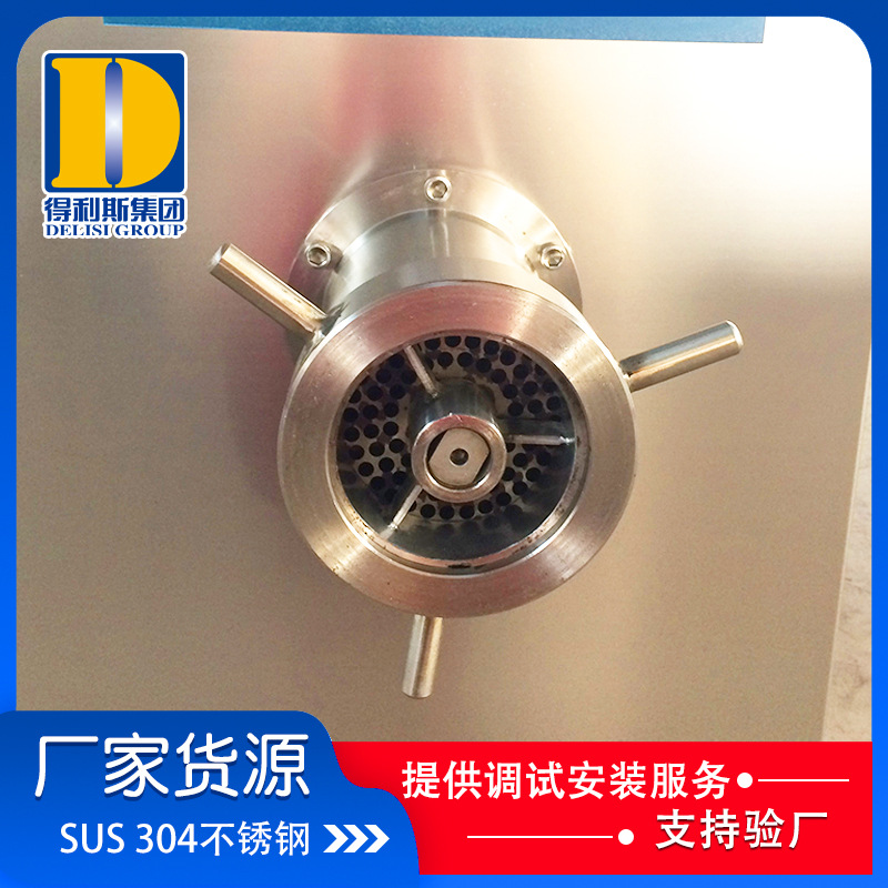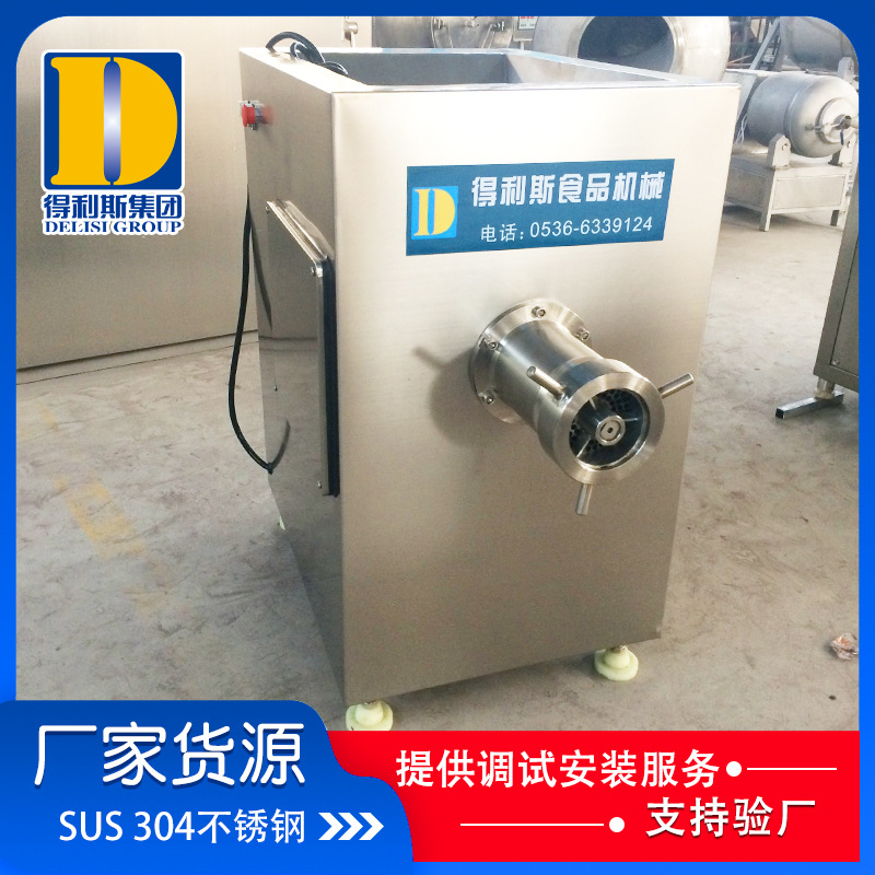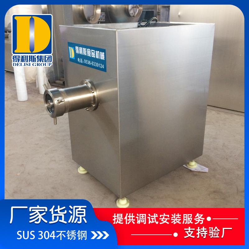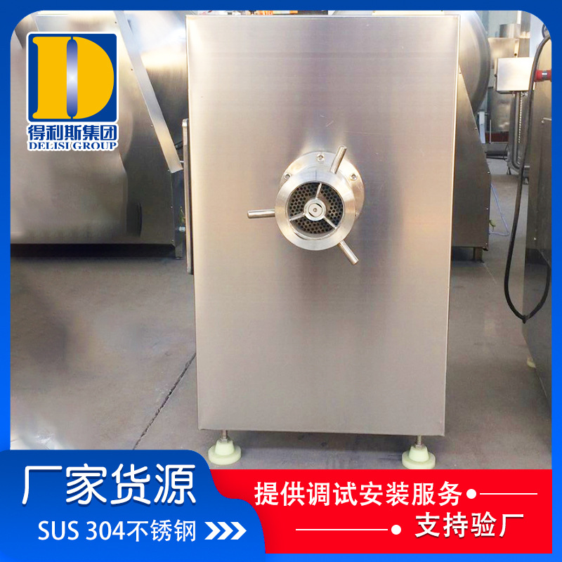 3、凍肉絞肉機是肉制品生產行業中通用性高使用范圍廣的種肉食加工設備。它是依靠螺旋桿將料斗箱中的原料肉推到預切板處,通過螺桿的旋轉擠壓使用孔板與鉸刀產生相對運轉,從而將原料肉切成顆粒塊狀,確保了肉餡的均勻性。