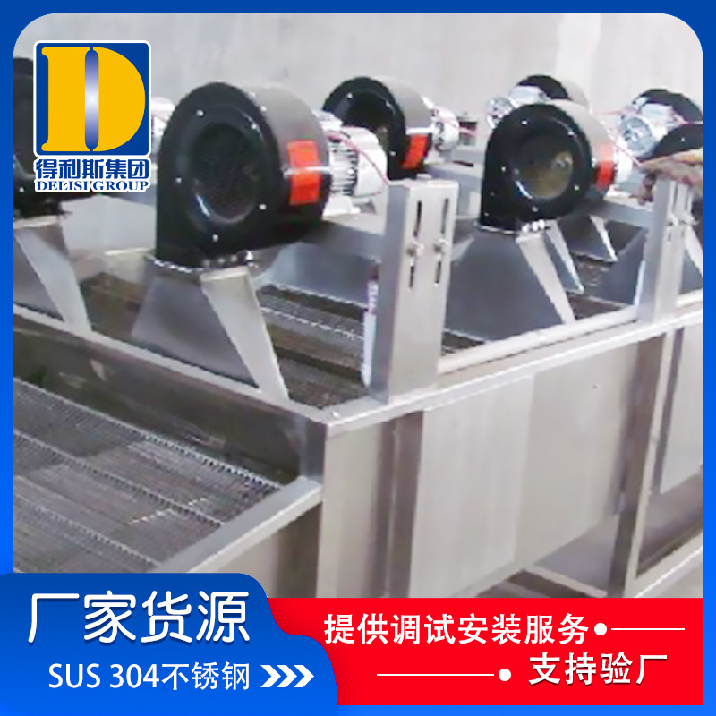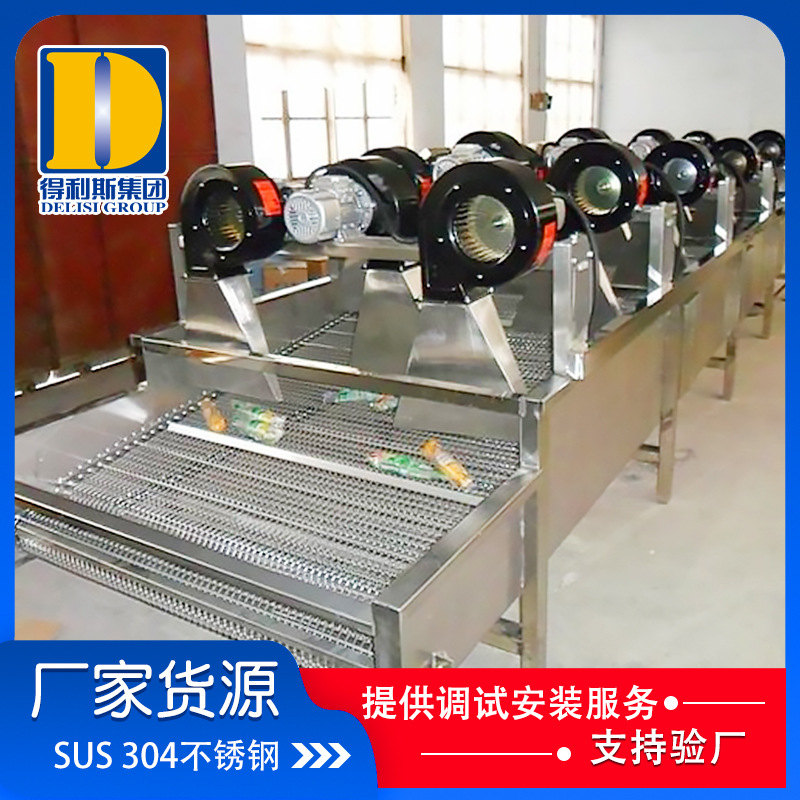 鴨脖食品包裝袋風(fēng)干機 肉干包裝袋翻轉(zhuǎn)式風(fēng)干線主要應(yīng)用于軟包裝表面水分的吹干,適用于水煮菜、調(diào)味菜、醬類、鹵肉、鹵蛋等采用塑料袋包裝的食品,經(jīng)過高溫(低溫)殺菌、冷卻,用本機將包裝袋表面的水分吹干,以方便迅速裝箱入庫。本機采用低功率,低噪音的風(fēng)機,吹風(fēng)口成風(fēng)刀狀,吹干風(fēng)溫為常溫,以便更有利于保護物料本身的色澤和品質(zhì),效果更佳。本機也可搭配清洗機使用,用于水果、蔬菜的快速吹干瀝水,以便更快地裝箱入庫,節(jié)約加工時間。